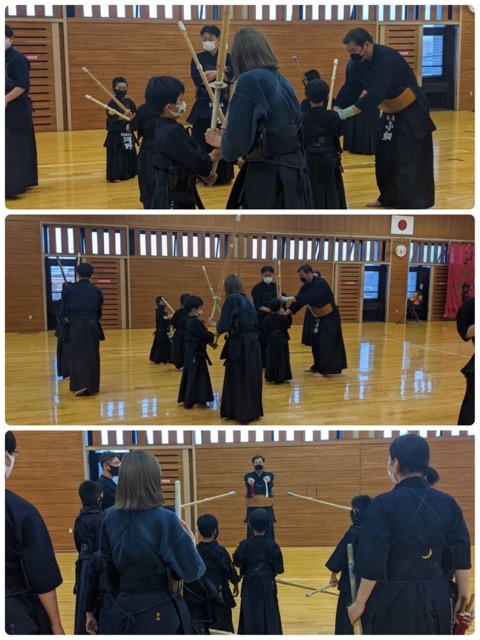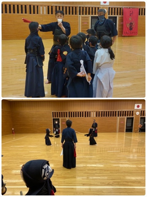 防具付けたばかりの子供たちに試合の所作を教えて実際に試合をさせてみました。(^^)