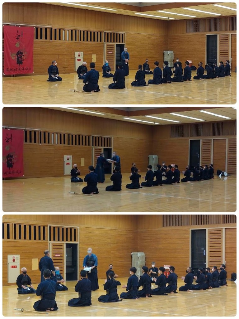 本日の稽古時に先月名古屋で行われた七段昇段審査会で合格された一般の部の櫻井先生に七段昇段記念の袴をお渡ししました。(^^)