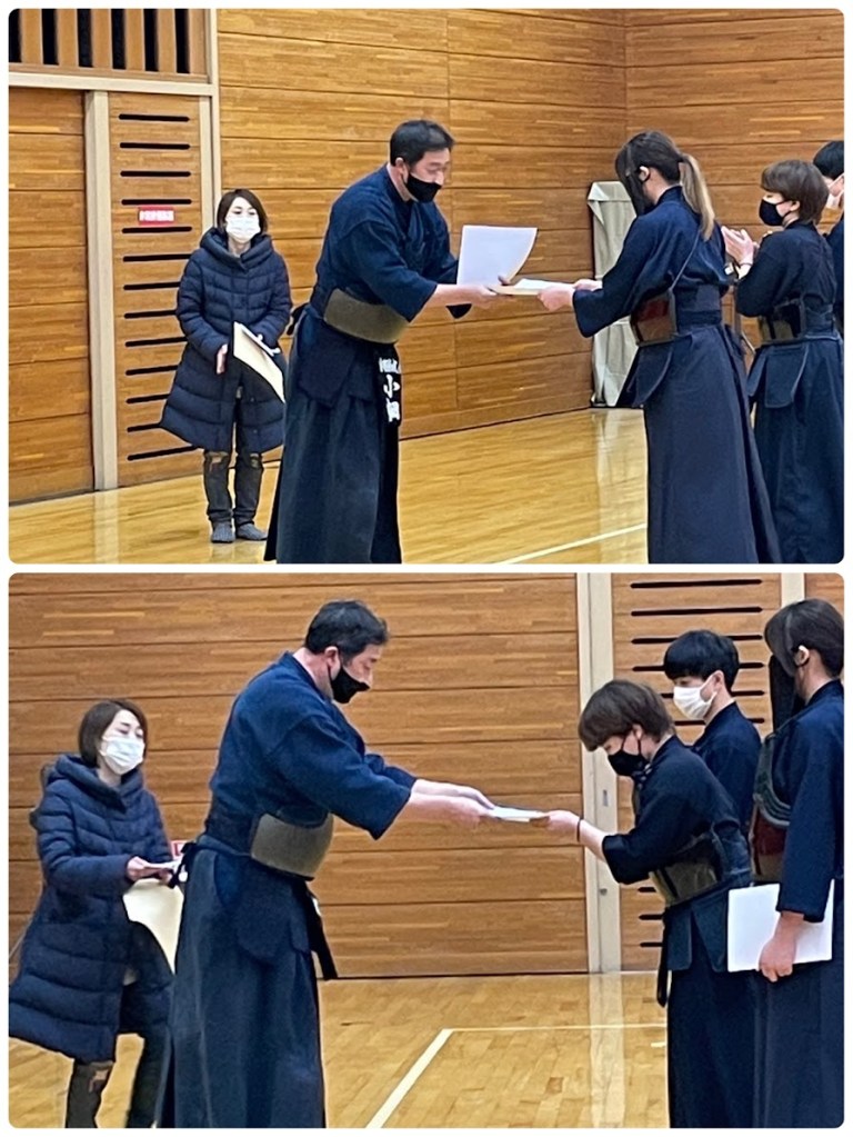 一般の稽古では先日行われた猪名川町剣道大会の入賞者に改めて賞状を渡しました。(^^)