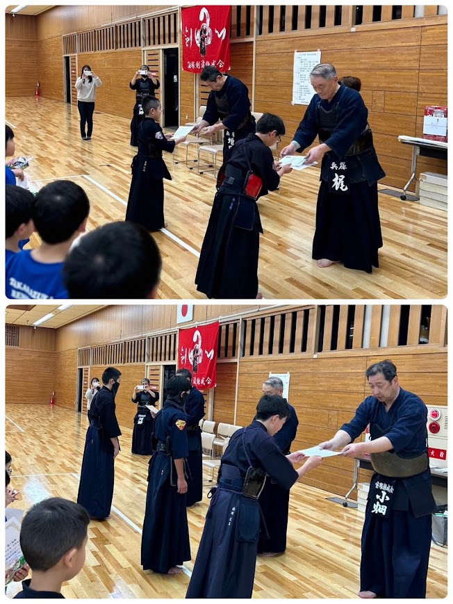 今日は宝塚市スポーツセンター武道館・剣道場の床の張替えが終了して綺麗になった道場で部内大会&卒部式でした。(^^)