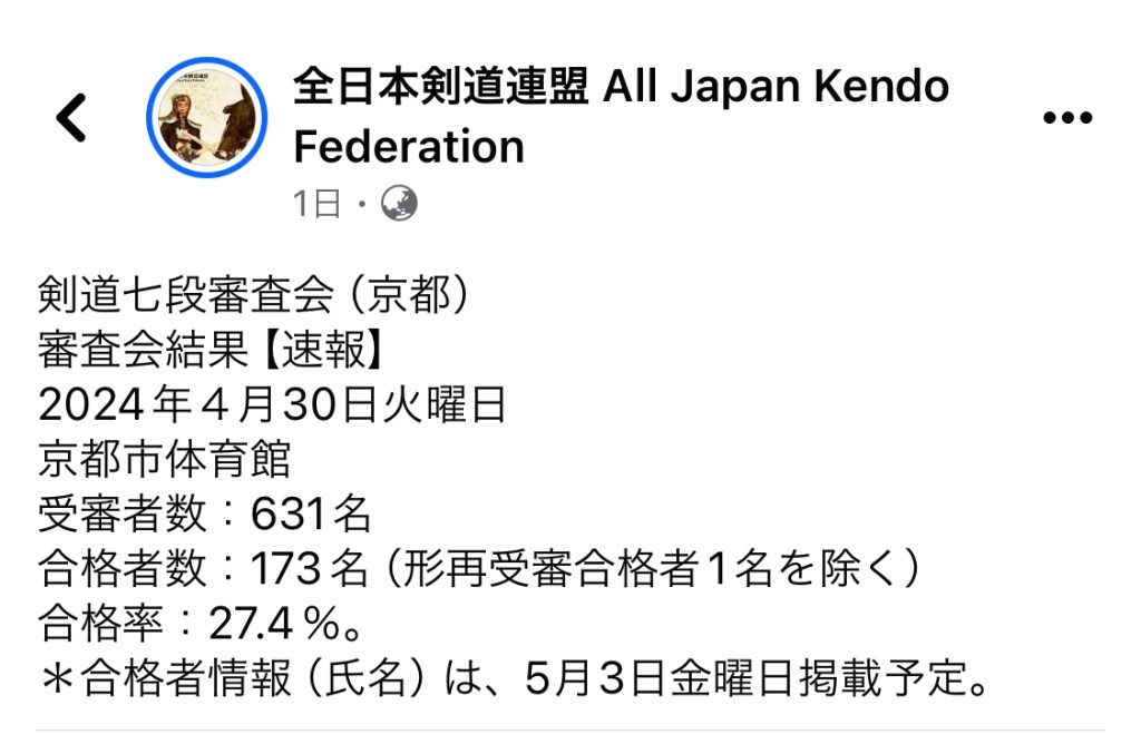 【速報】剣道七段審査会(京都) 投稿者:kendorenseikai2024年5月1日カテゴリー:未分類 宝塚剣道錬成会 副会長少年の部代表足立先生が七段審査に合格されました。 おめでとうございます Screenshot 共有: クリックして X で共有 (新しいウィンドウで開きます) X Facebook で共有するにはクリックしてください (新しいウィンドウで開きます) Facebook いいね 読み込み中… 関連
