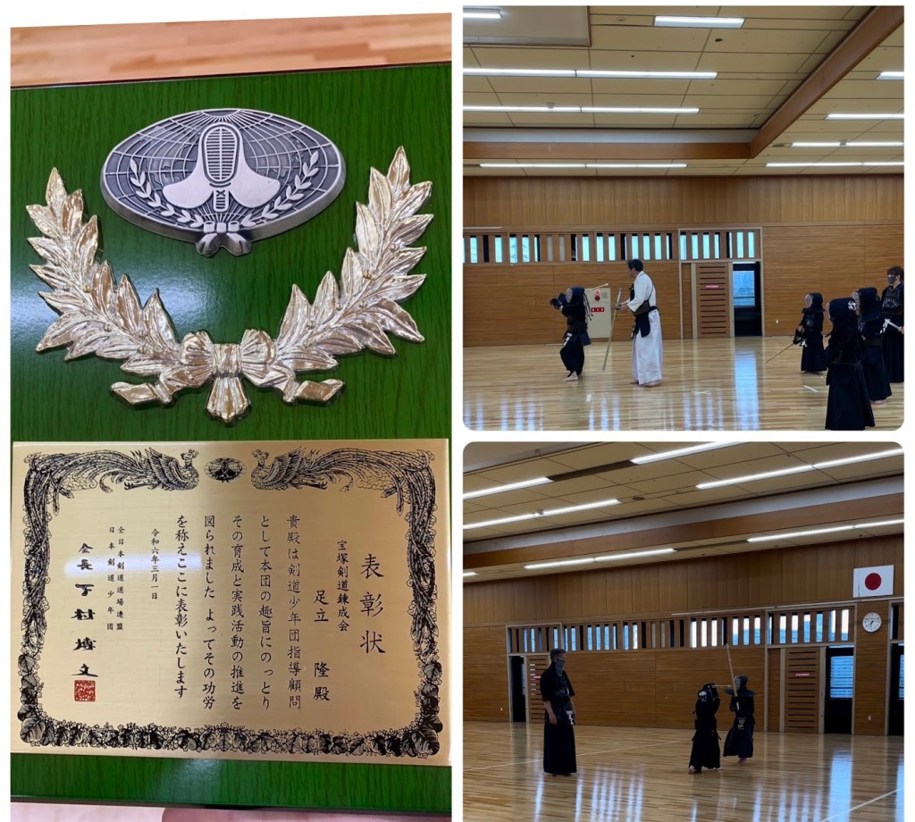 まずは、6/2(日)第38回兵庫県道場少年剣道大会で優秀剣道少年指導顧問を受賞された足立先生と改めて道場でお写真を撮りました!