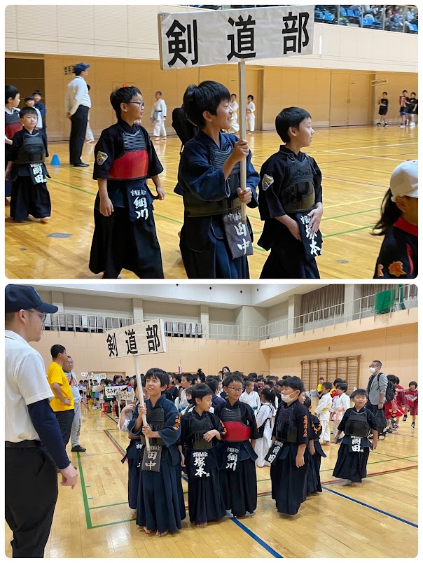 本日はスポ少秋季大会合同開会式へ、当会より8名が渕野先生のご引率で、他の会の皆様と剣道部として参加してきました!