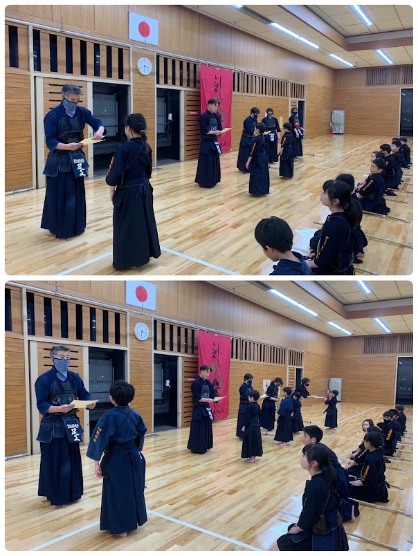 その後は、再来週に控えている和歌山県剣道道場連盟紀の国剣道新人優勝大会に出場するメンバーへの胴渡しがありました。