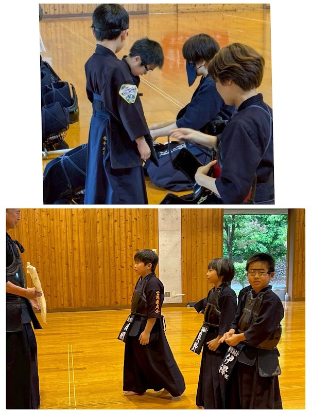その後は朝食を頂き、各自荷物の片付けをして道着に着替えて防具装着!