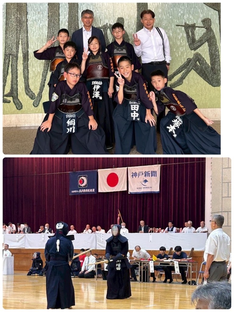 が開催され、当会、増田先生が阪神北地区の大将で出場され、同じ宝塚市の安倉剣友会・黒木先生も一緒に出場され、応援