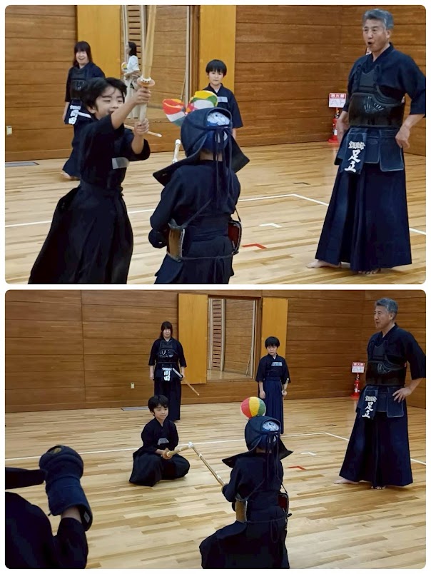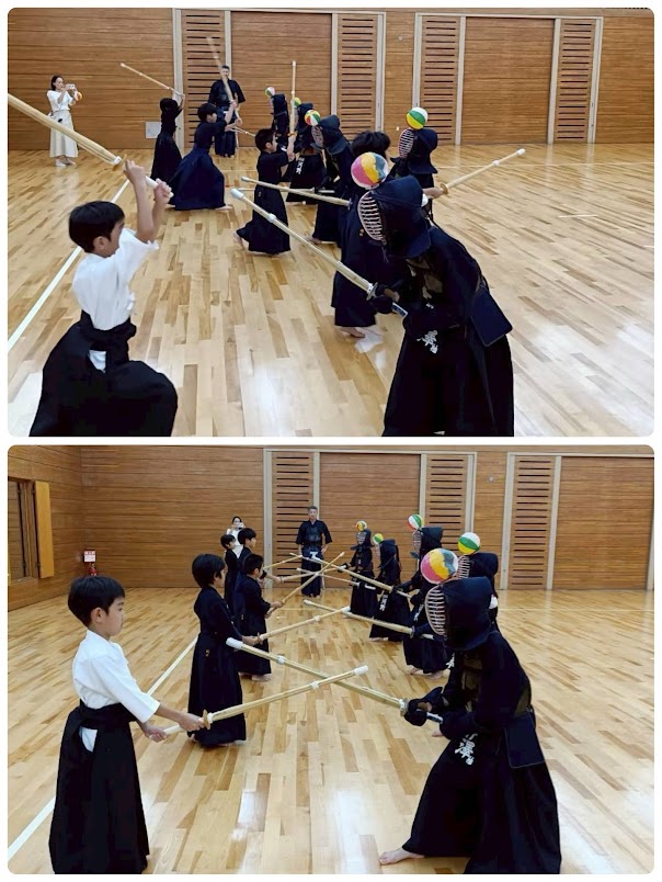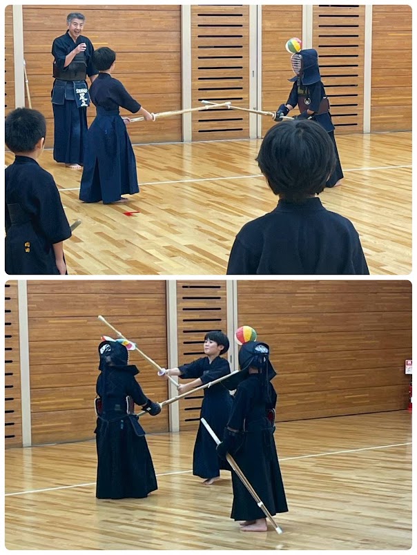 今日も、紙風船を付けた錬成会の子どもたちに元立ちをしてもらい、面うちの練習をしました。