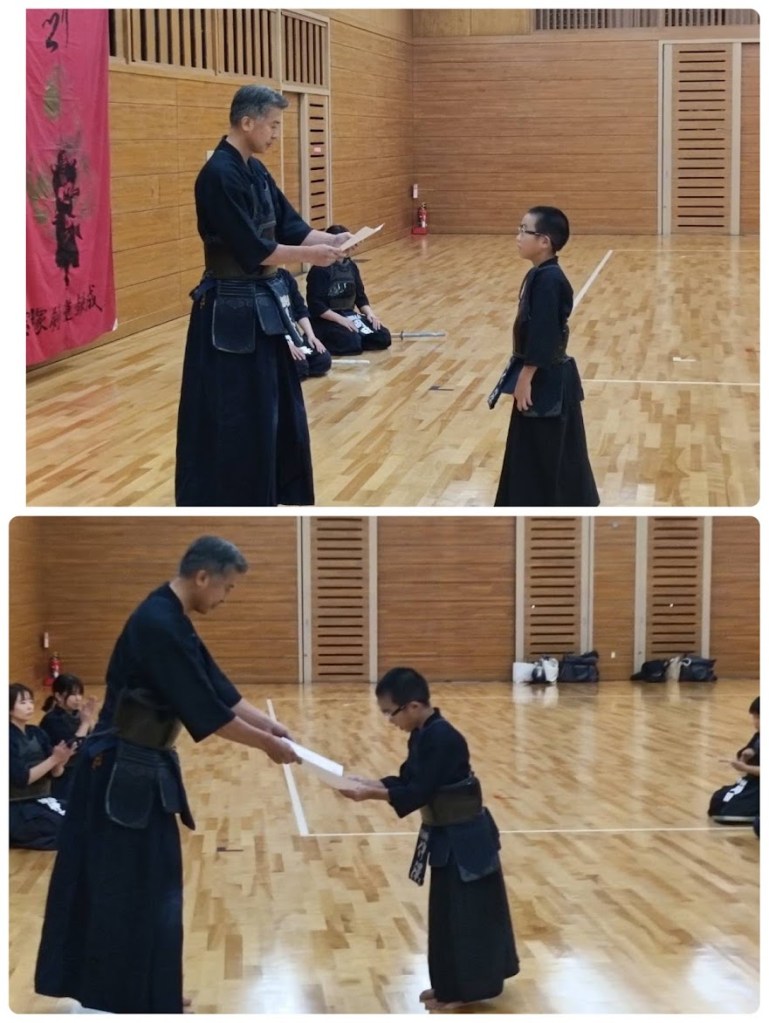 1・2年生の部で準優勝に輝いた伊澤総一郎くんに、足立先生より表彰状が授与されました!