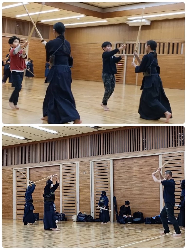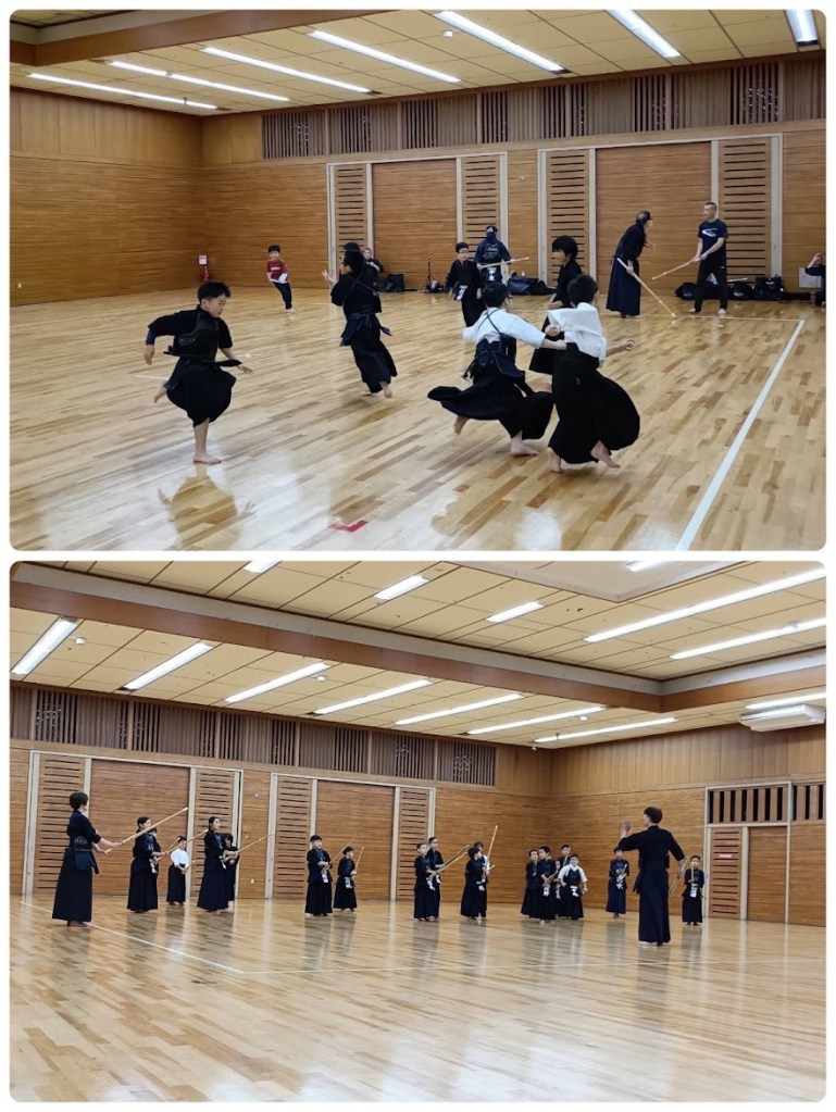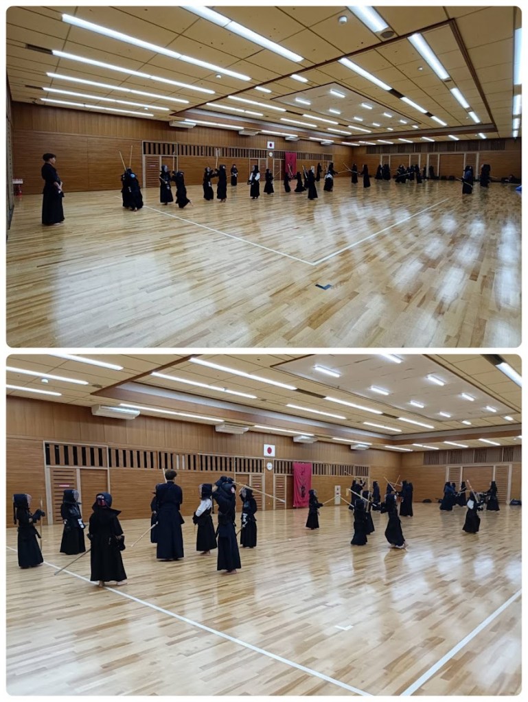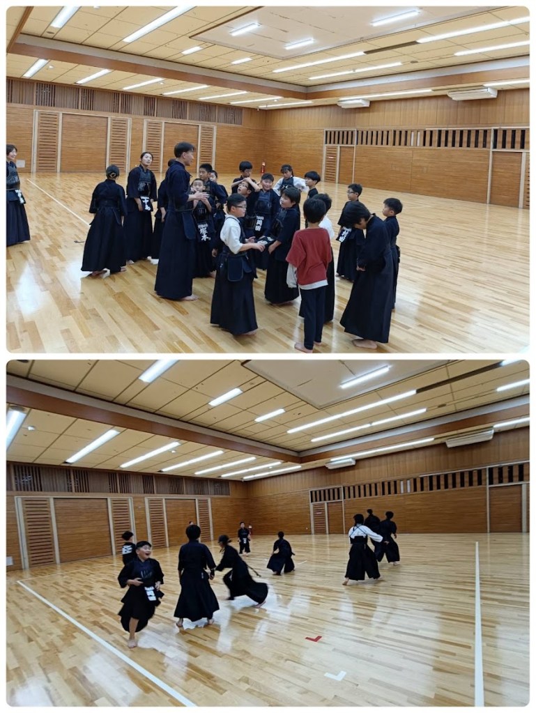 道場をたっぷり使って全員で足さばき、空間打突の練習もたくさんしました。