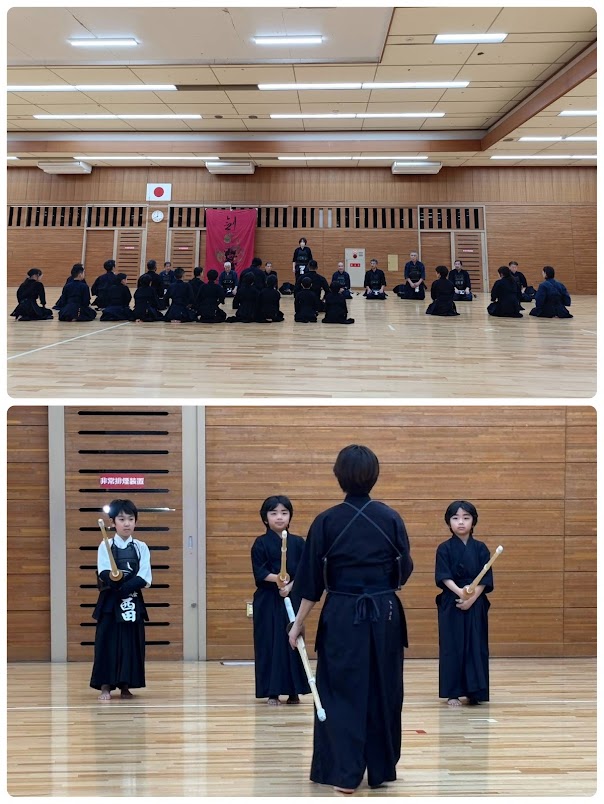 お稽古では高学年、低学年、素振り組等、各グループに分かれ、それぞれのレベルに合わせたご指導をして頂きました。