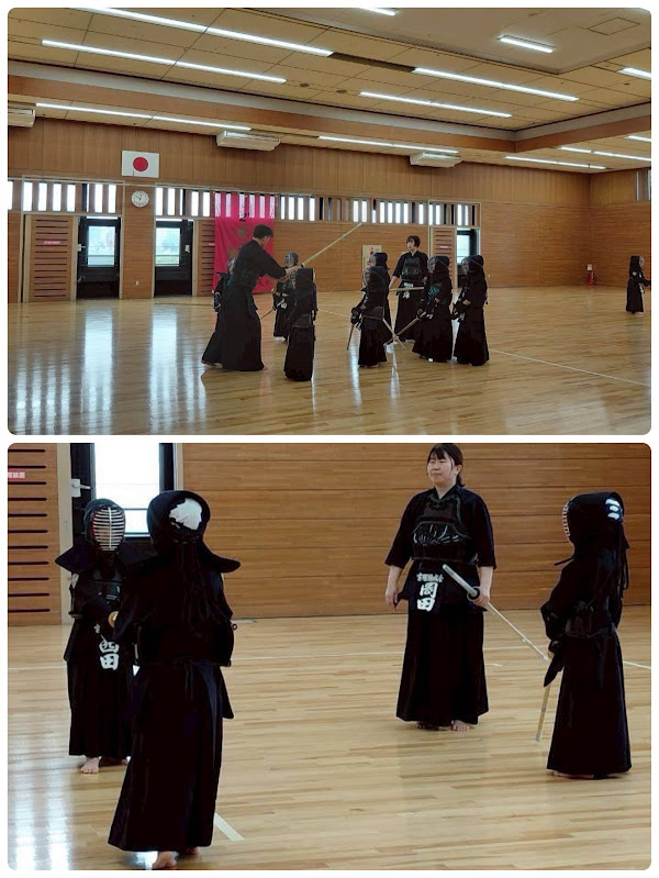 面付初心者組も先輩の所作を見て学び、先生方に教えてもらい、いざ試合稽古!!